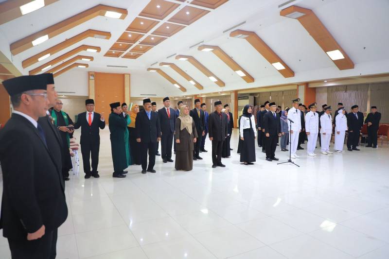 Penjabat (Pj) Wali Kota Tangerang Nurdin secara resmi melantik dan mengambil sumpah jabatan pada tiga PNS baru dan 29 pejabat struktural di lingkup Pemerintahan Kota Tangerang, yang berlangsung di Aula Al Amanah, Pusat Pemerintahan Kota Tangerang, Senin (3/2/25).