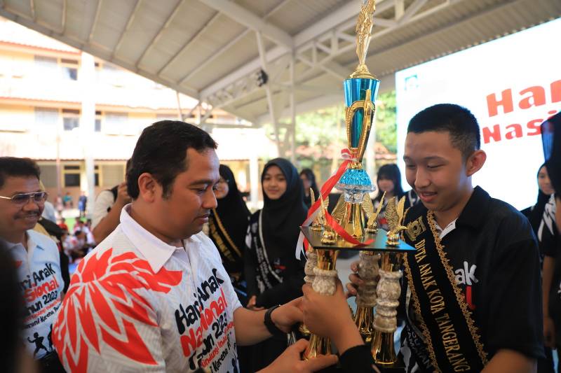 Puncak Hari Anak Nasional (HAN) 2023 tingkat Kota Tangerang sukses digelar di Pusat Pemerintahan (Puspem) Kota Tangerang, Jumat (28/7/23). Kegiatan dihadiri Wali Kota Tangerang, Arief R Wismansyah, Wakil Wali Kota Tangerang, Sachrudin, seluruh kepala OPD, Camat dan seluruh jajaran.