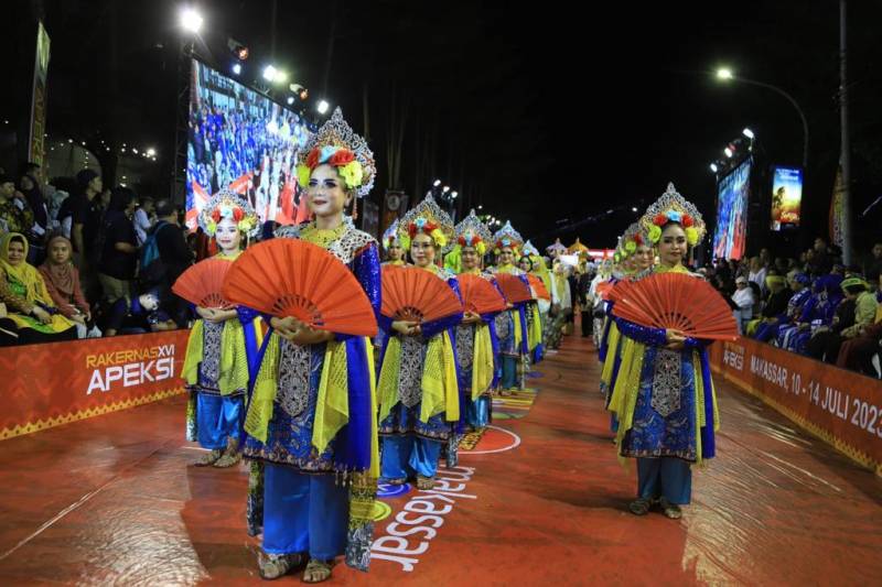 Kostum Jembatan Berendeng Hingga Tarian Benteng Pasundan Betawi Curi Perhatian di Karnaval Budaya APEKSI XVI Makassar