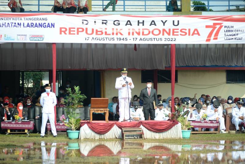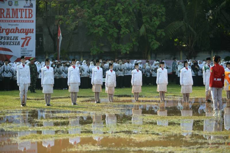 Hal itu pun terlihat pada jajaran Paskibraka Kecamatan Larangan, Kota Tangerang yang menggelar Upacara 17 Agutus HUT RI ke-77 dengan situasi yang luar biasa. Dimana, 25 anggota Paskibra tetap bertugas dengan sepenuh hati, walau kondisi lapangan Stadion Mini Larangan Indah masih tergenang sisa-sisa air dan lumpur akibat hujan di malam hingga dini hari.