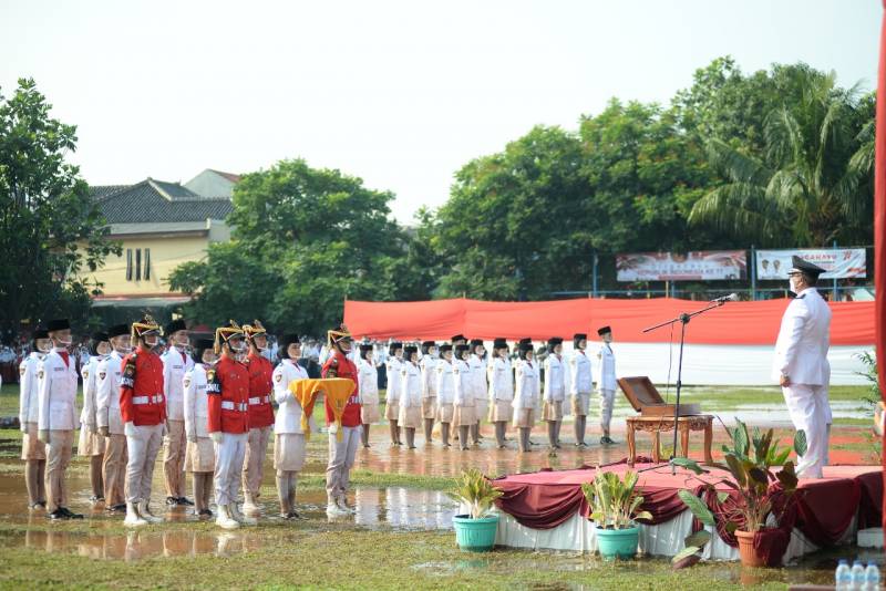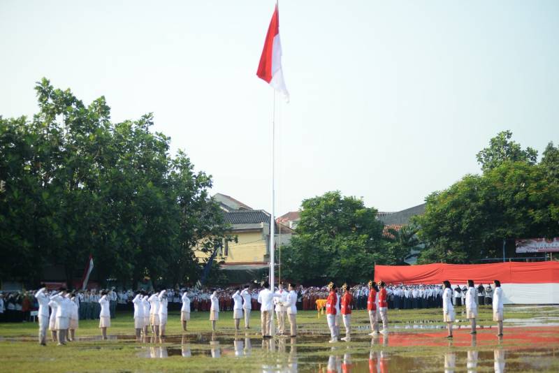 "Terimakasih atas semua dedikasi kalian semua, Paskibra, Panitia, peserta upacara, tamu undangan, orangtua Paskibaraka, semua kami sampai rasa terimakasih. Karena situasi dan kondisi genangan air dan tanah, sama sekali tidak mempengaruhi prosesi Upacara 17 Agustus. Semua berlangsung dengan khidmat dan membanggakan," tegasnya.