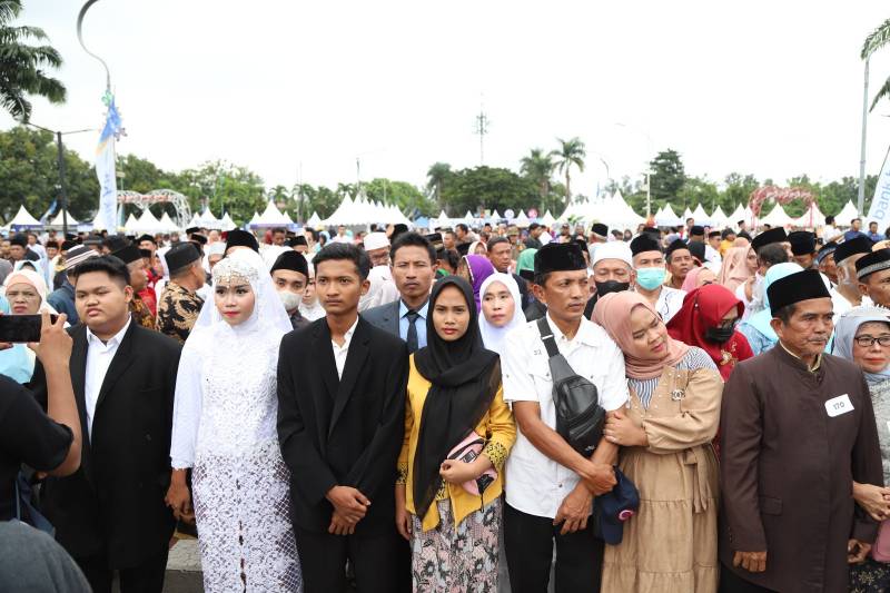 Setelah melaksanakan sidang isbat nikah terpadu, Pemerintah Kota (Pemkot) Tangerang melalui Dinas Pemberdayaan Perempuan, Perlindungan Anak, Pengendalian Penduduk dan Keluarga Berencana (DP3AP2KB) gelar "Ngabesan" untuk merayakan pasangan yang telah resmi menikah, di Area Pusat Pemerintahan Kota Tangerang, Jumat (24/2/2023).