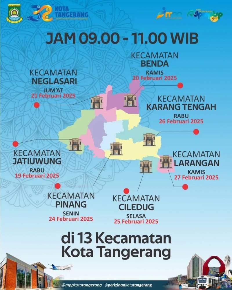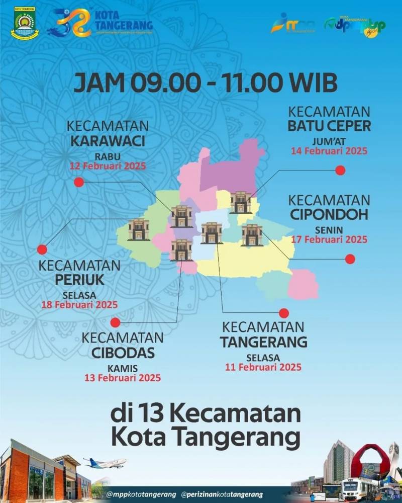 1. Kecamatan Tangerang pada 11 Februari 2025, pukul 09.00-11.00 WIB.
