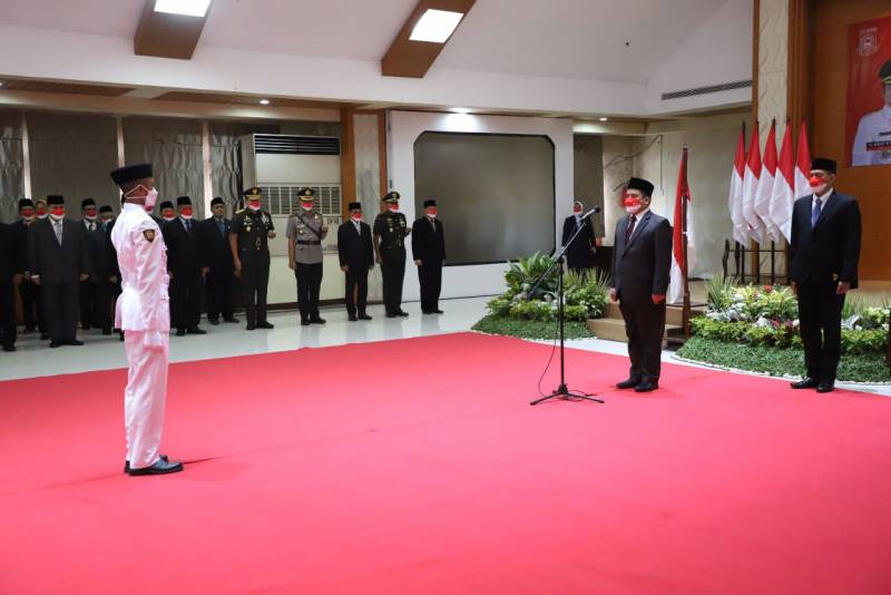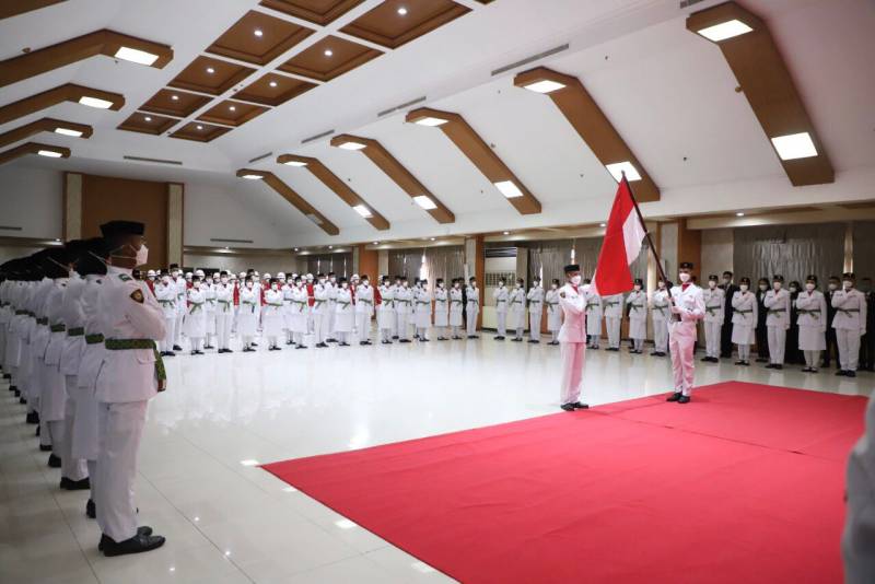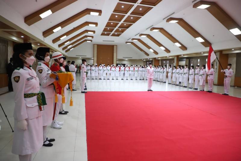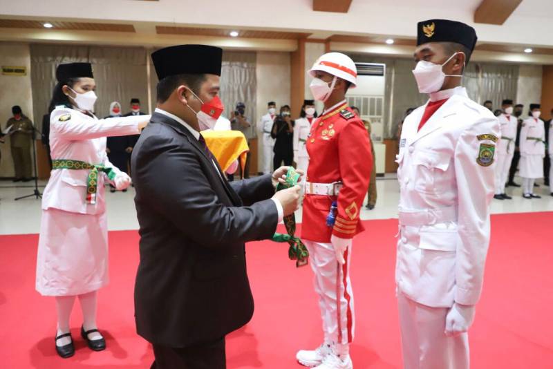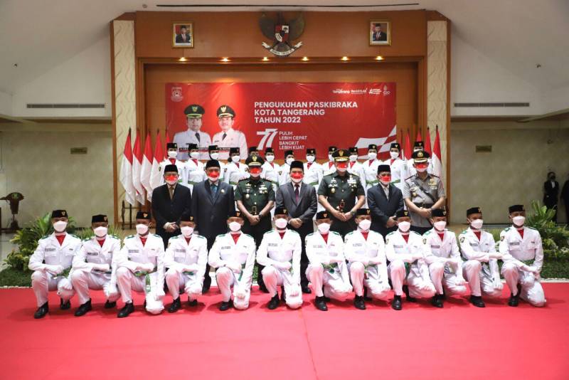 Berlangsung dengan khidmat, Wali Kota Tangerang, Arief R Wismansyah mengukuhkan 51 anggota Pasukan Pengibar Bendera Pusaka (Paskibraka) Kota Tangerang tahun 2022, yang berlangsung di Ruang Al Amanah, Puspem Kota Tangerang, Senin (15/8/22).
