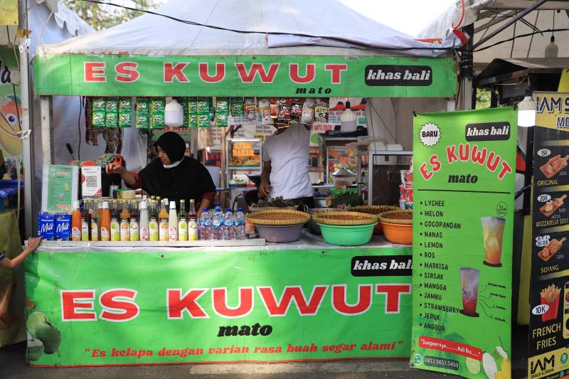 Setelah berkeliling mencicipi aneka makanan, tentunya minuman segar tak boleh terlewatkan. Es Kuwut Mato menjadi rekomendasi paling dicari sebagai minuman segar khas Bali yang ada di Festival Al Azhom 2023. Minuman dengan cita rasa soda ini memiliki beragam rasa yakni lychee, melon, cocopandan, nanas, lemon, ros, markisa, sirsak, manga, jambu, strawberry dan masih banyak lagi. Dengan harga Rp10 ribu saja, kamu dapat menikmati satu gelas es kuwut yang berlokasi di area luar Mesjid Raya Al A’zhom Kota Tangerang.