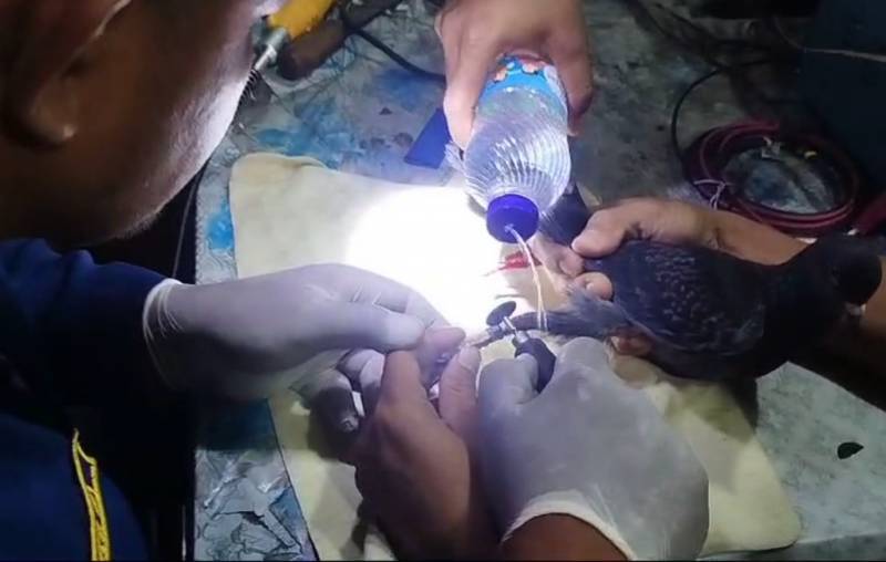 Ia pun menjelaskan, petugas perlahan memotong cincin dengan hati-hati sambil menggunakan air. Akhirnya, petugas melepas cincin dari kaki burung merpati tersebut dalam kurun waktu 15 menit.